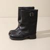 Vintage Women Ankle Boots Fashion Belt Buckle Slip On Shoes Female Thick Heel Short Booties Zapatos De Mujer