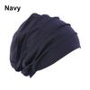 Ensfarvet Dame Elastisk Bomull Fold Turbanhatt Myk Bonnet Muslimsk Hijab Dame Hodeplagg Varm Luer Kemohatt