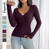 Elegant style long-sleeved button bottoming shirt wool weaving women's clothing 2025 autumn and winter