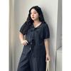 Plus size women clothing [Loose Wide-Leg Pants] Chubby Girl Summer Elastic High Waist Casual Hollow Lace Capri Pants