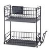 Wahei Freiz Iron Dish Drainer, Plonge, 2-Tier, Slim, Powder Coated, with Cutlery Pocket and Cutting Board Holder, PM-9016