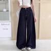 Women's Summer 2024 Retro High-Waisted Dark Wash Wide-Leg Jeans