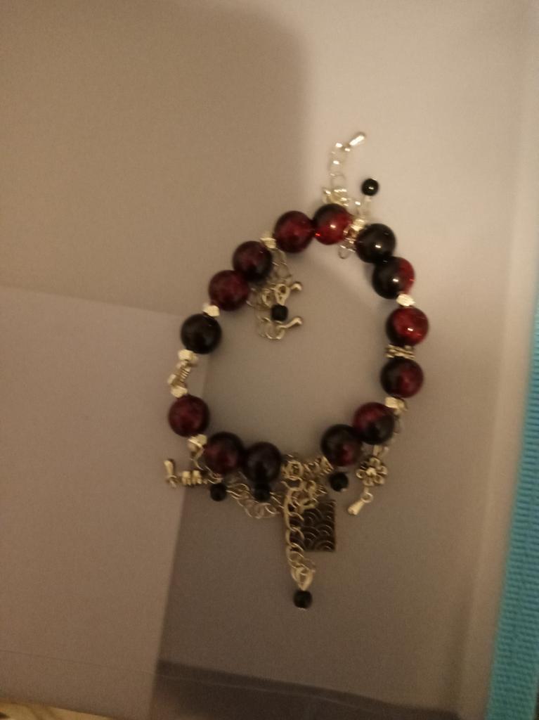 Exquisite Glazed Wine Red Butterfly Floral Beaded Bracelet for Women - Light Luxury Snowflake Design.