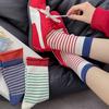 Female Spring and Autumn Pure Cotton Color Stripe Heel Cloth Label Wicking In The Tube Pile Socks