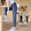 Plus size women clothing [Ice Silk Instant Cool Pants] Three Pants Length Texture Sense Summer High Waist Capri Wide Leg Cool Pants