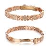 European and American Cross-Border Leaf Inlaid Diamond Magnetic Bracelet, Antique Red Copper, Brushed, Adjustable.