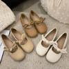 Sløyfe flate sko for kvinner Fall Nye Firkantet Hode Grunn Munn En linje Spenne Myk såle Sklisikker enkeltsko
