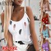 New Women Fashion Summer Casual Sleeveless Feather Print Spaghetti Strap Tops