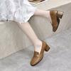 Square head small leather shoes women's 2025 spring new simple and generous light mouth thick heel work shoes medium heel leather shoes dress shoes