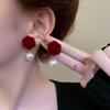 2025 New Wine Red Velvet Rose Pearl Earrings for Women Vintage Red Rose Elegant High-end Studs Earrings Jewelry Accessories