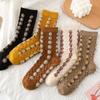 Flower Embroidered Middle Tube Socks Women Autumn Winter Fashion Harajuku Vintage Cotton Long Socks Japanese Kawaii Ruffle Socks