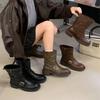 Niche retro buckle thick-soled short Martin boots women's autumn and winter new thin black fashion boots