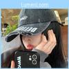 Black Wide Chic Brim Baseball Cap For Women With Distressed Versatile Style
