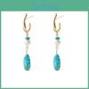 The vibrant blue color of the natural stone is reminiscent of the serene ocean and clear skies, providing a calming effect that will enhance your overall look. The hoop design is a timeless classic that never goes out of style, making these earrings a versatile choice for any event, whether it's a casual day out or a formal evening affair. The circular shape of the earrings is a popular fashion element that adds a modern twist to a traditional design, making them a fashion-forward choice for the contemporary woman.