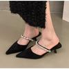 Fashion 2025 Black Rhinestones Heeled Mules Pump for Women Elegant Sparkly Sandals Summer Slippers Women's Sexy High Heels Slingbacks