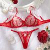 New Women Red Lace Exquisite Embroidery Floral Ultra-thin Deep V Sexy Lingerie Transparent Underwear Bra Set Erotic Costumes
