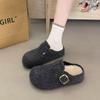 The woolen bag head woman wears a new thick bottom to increase the height, and the lazy person pedals half slippers with one foot.
