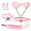 Anal sexleketøy revehale buttplugg Sexy plysj katteørehodebånd med bjeller Halskjedesett Massasje Sexleketøy For kvinner Par Cosplay