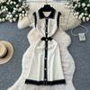 Elegant Fashion Autumn Winter Women Sweater Dress V Neck Kntting Thick Warm Midi Dress Office Lady Black Knitted Dress With Belt