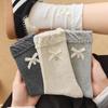 Women's Gray Lace Bow Mid-Calf Cotton Socks - Cute, Thin, Sweat-Absorbent, Boneless Design