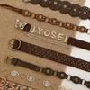 Vintage Western Style Brown Rivet Belt Female Niche Design Flower Waist Rope with Skirt Jeans Waist Seal Accessories