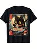 Cat Ramen Anime Japanese Kitten Eating Noodles Funny Mens Womens T-Shirts Top#D