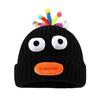 Women Knitted Hat Sausage Mouth Design Ear Protection Warm Hat 3D Big Eyes Versatile Hat Winter Accessory