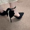 12Cm thin heel waterproof table one-word buckle with fashion adult gift high heels bow high heels pointed sandals women