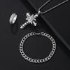 3Pcs Set Men'S Stainless Steel Metal Cross Pendant Chain Necklace Bracelet Ring Jewelry Set Male Hip Hop Daily Wear Accessories
