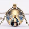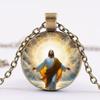 A vintage style Christian Jesus resurrection pendant angel wings glass pendant necklace fashion accessory, a perfect holiday gift for any occasion