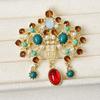 Retro European Court-Style Gemstone Brooch - Antique Replica with Full Diamond and Colorful Gems for Women