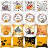Home Cartoon Pumpkin Head Halloween Pillow Cover Peach Velvet Cushion Cover Office Sofa Cushion Cover