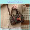 Marn Letters Kieen Cotton Tote Bag Plaid Pattern Soft Structure Travel Work