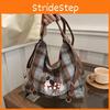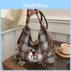 This urban minimalist cotton tote bag features a soft, flexible structure with a water-bag shape and a stylish plaid pattern. Made of durable cotton, it measures approximately 29*26.5*9.5cm, ideal for daily commuting and casual outings. The zippered opening and internal phone pocket support secure, organized storage. Wipe clean with a damp cloth to maintain its appearance.