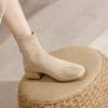 Square head plus suede short boots women's boots autumn and winter elastic thin boots thick heel medium heel single boots gray apricot Martin boots
