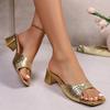 Fashion Fashion Narrow Band Buckle Slide Sandals 42 Large Size Open-toe Square Heel Sandals Woman Comfort Non-slip Vacation Beach Shoes