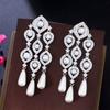 ZAKOL Изысканные Блестящие Циркониевые Круглые Циркониевые Длинные Серьги Высококачественные Серебряные Золотистого Цвета Свадебные Серьги Циркониевый Подарок