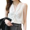 [A classic solid-color blouse for casual outfits] This blouse looks great with loose-fitting wide-leg pants, regular jeans, long pants, short skirts, and casual pants. The beautiful sheen of its silky touch makes it a great blouse or an inner layer for everyday wear. Its simple design also pairs well with accessories like bracelets and necklaces. This vest will add a touch of elegance to any outfit.