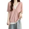 Fake Layered Layered Look Short Summer Large Casual [Fosys] T-Shirt, Sleeve, Women's Clothes, Knit, Thin, Size, (JP, Alphabet, XL, Beige)